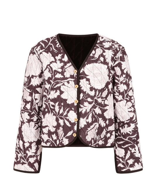 Quilted Velvet Jacket Reversible w/Printed Pattern Chocolate