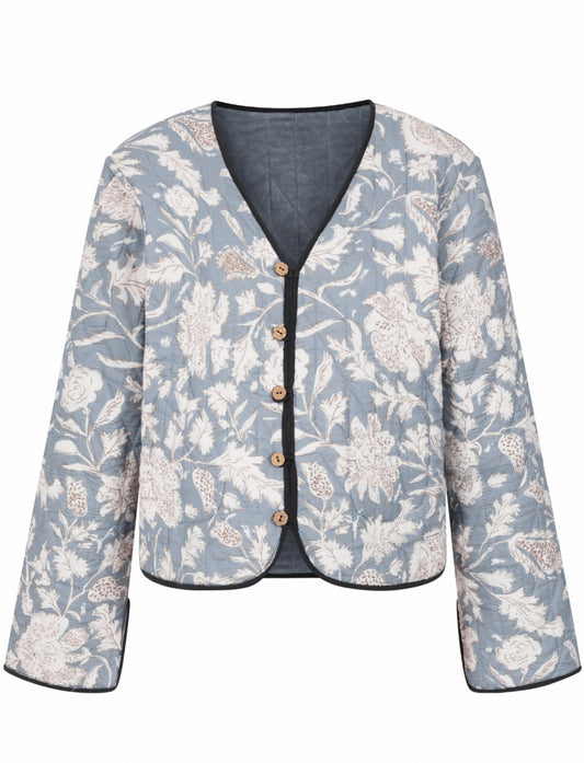 Quilted Velvet Jacket Reversible w/Printed Pattern Ice Blue