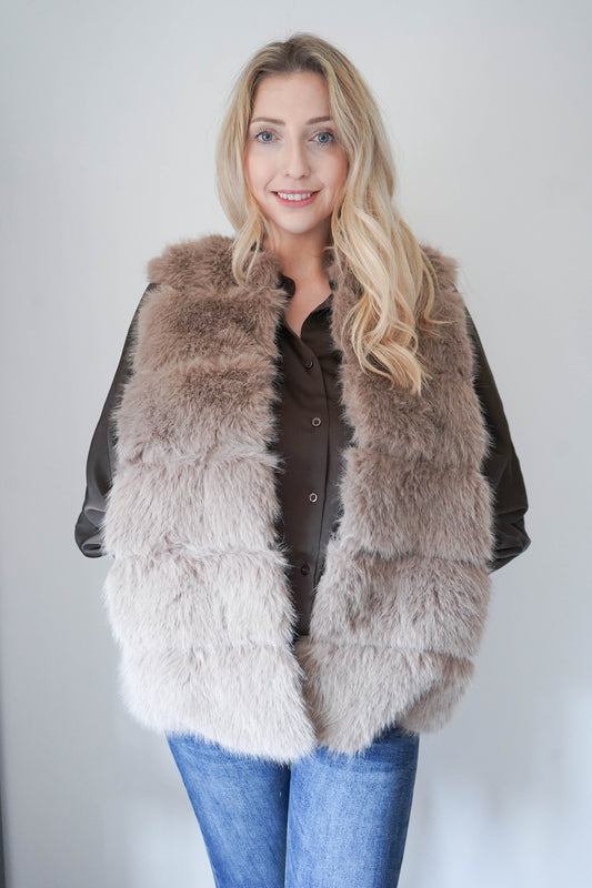 Lulu Natural Stone Retro zip front Faux Fur Jacket
