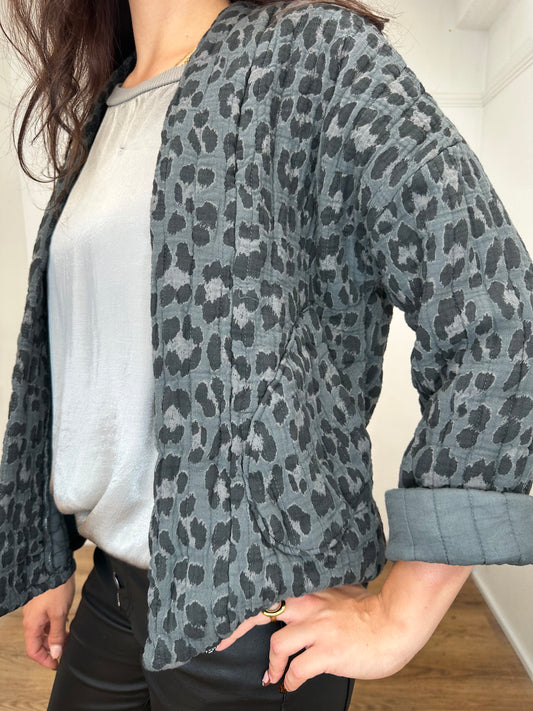 Romano Reversible Chocolate/Leopard print quilted jacket