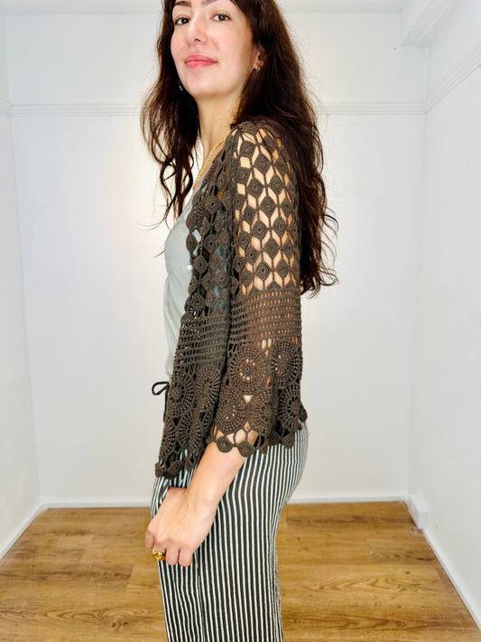 Frankie Funnel Neck Ribbed Lace Knit- Chocolate Brown