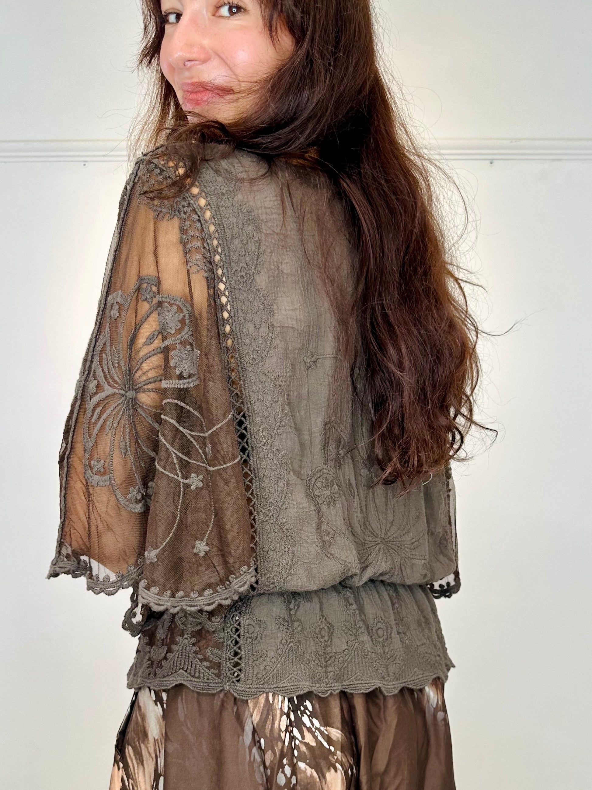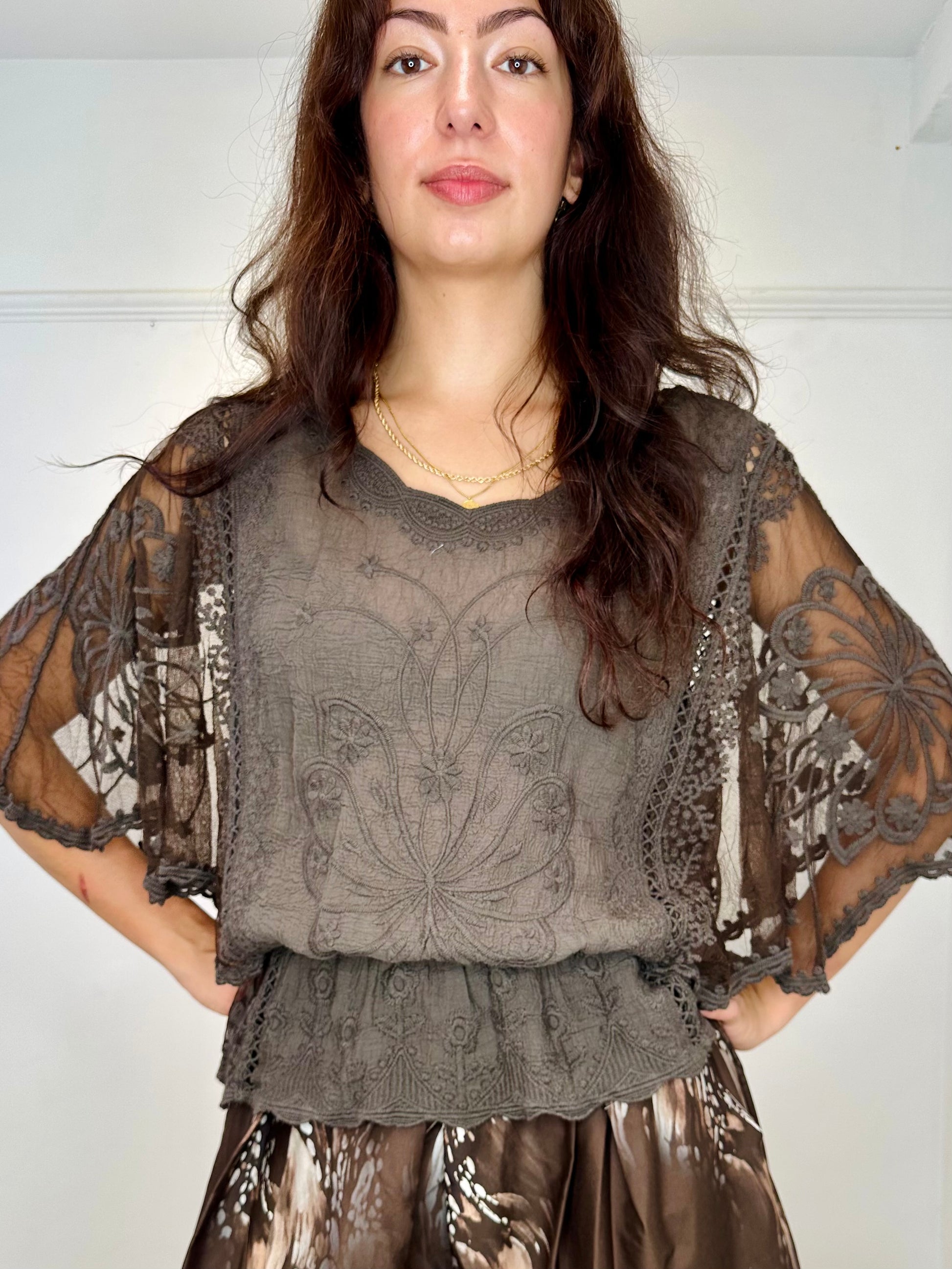 Bessie Butterfly Lace sleeve top - Bestseller - Chocolate