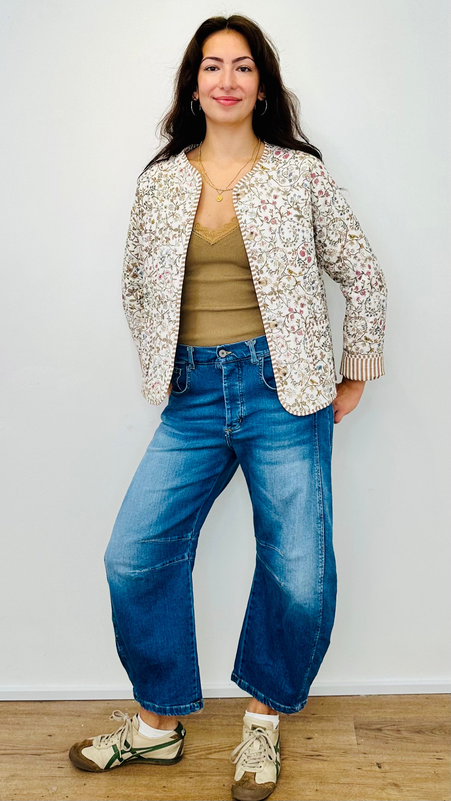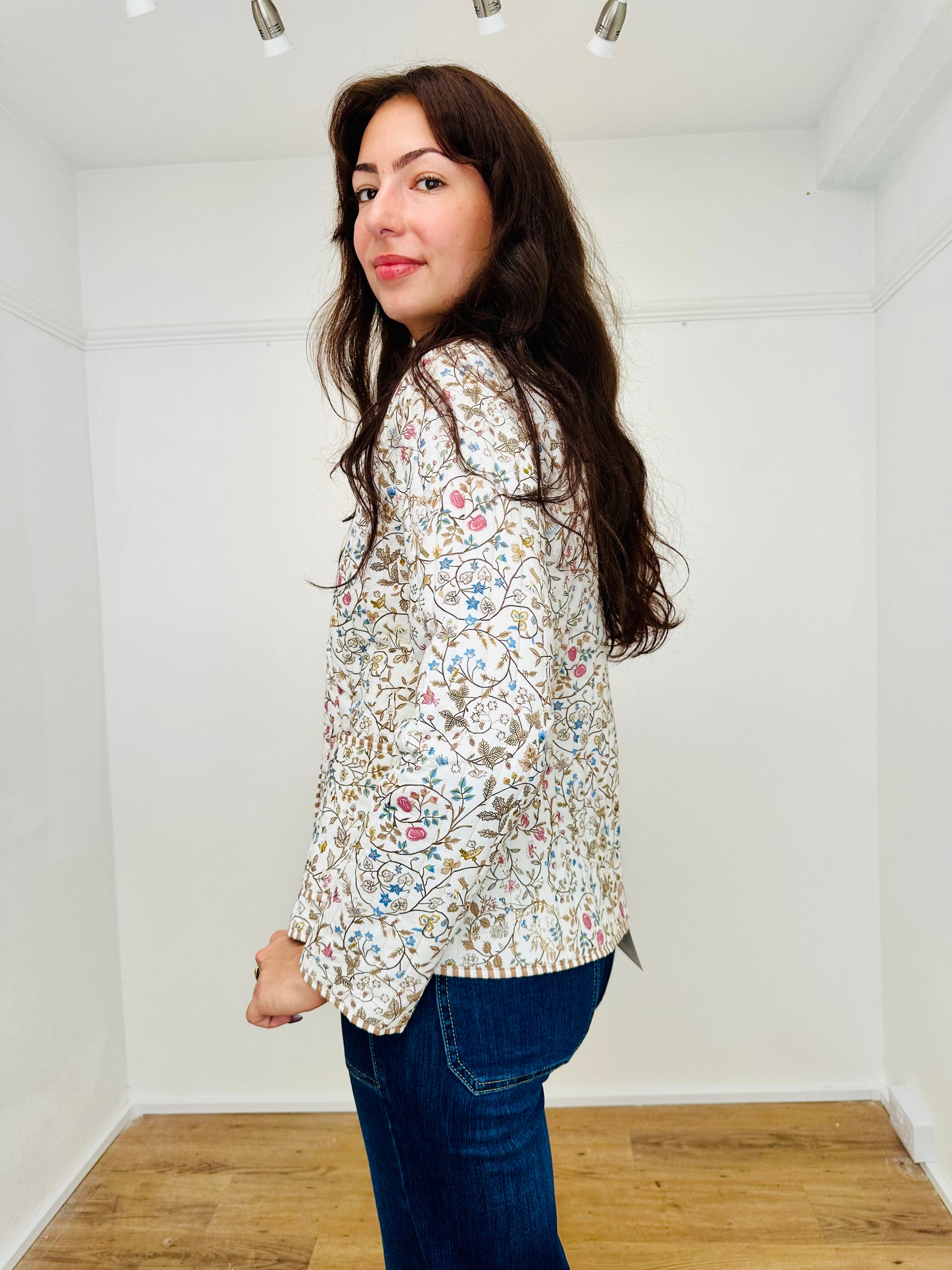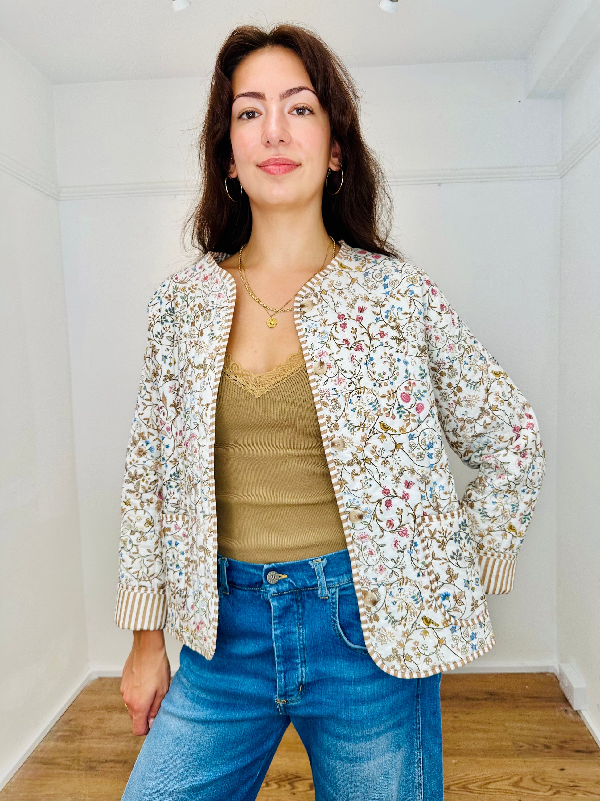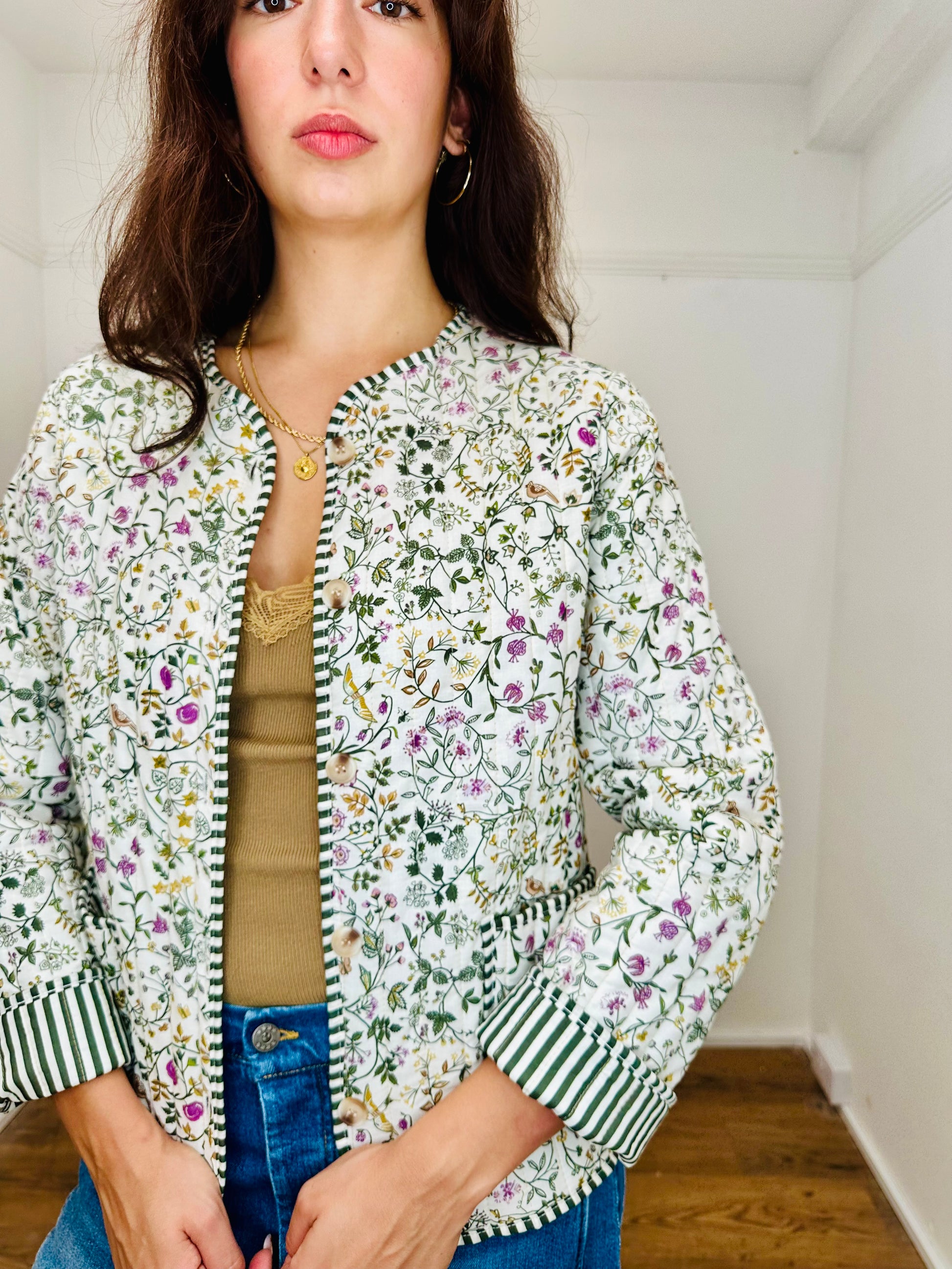 100% Cotton jacket with pretty all over ditsy floral print with contrasting striped lining.