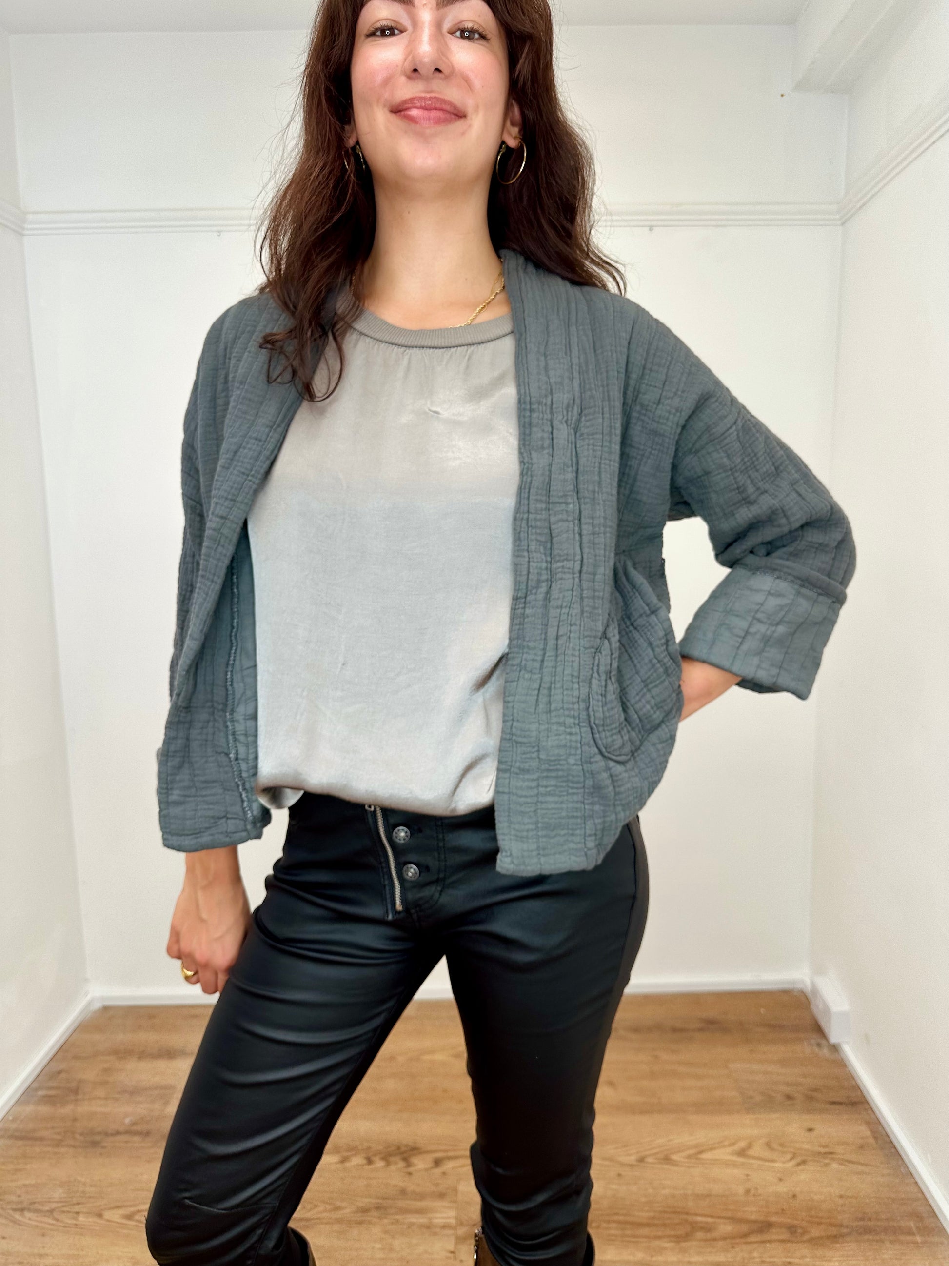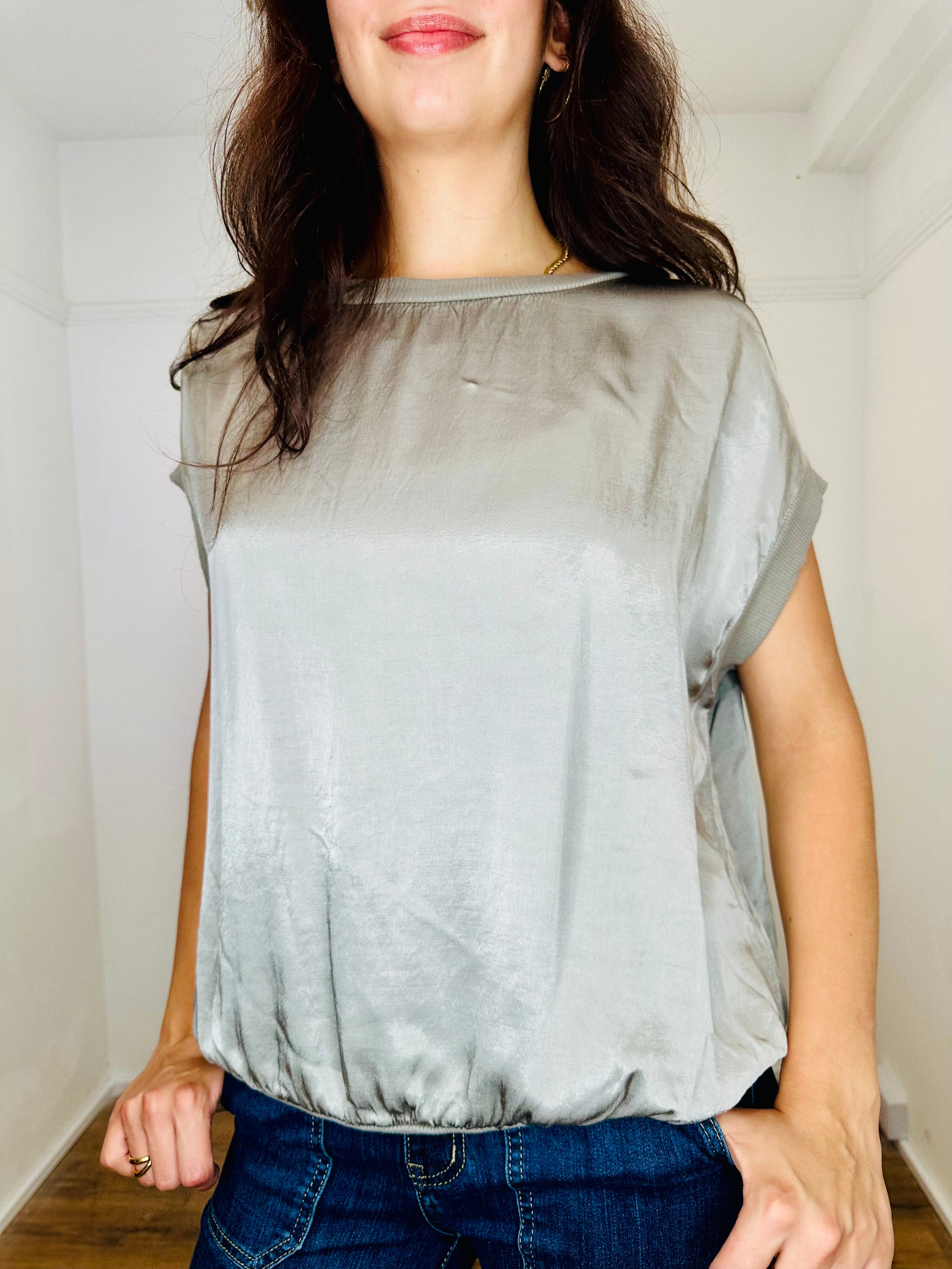This pretty short sleeve tank is supersoft and shimmers beautifully with ribbed sleeves, hemline and neckline detail.